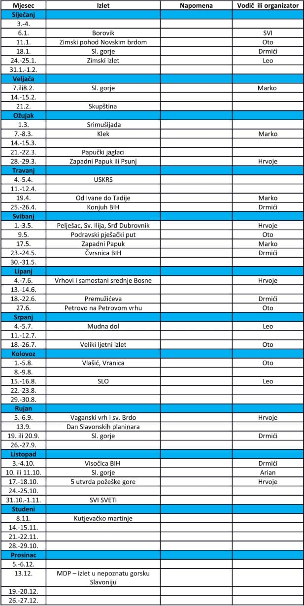 Plan izleta za 2026. godinu
